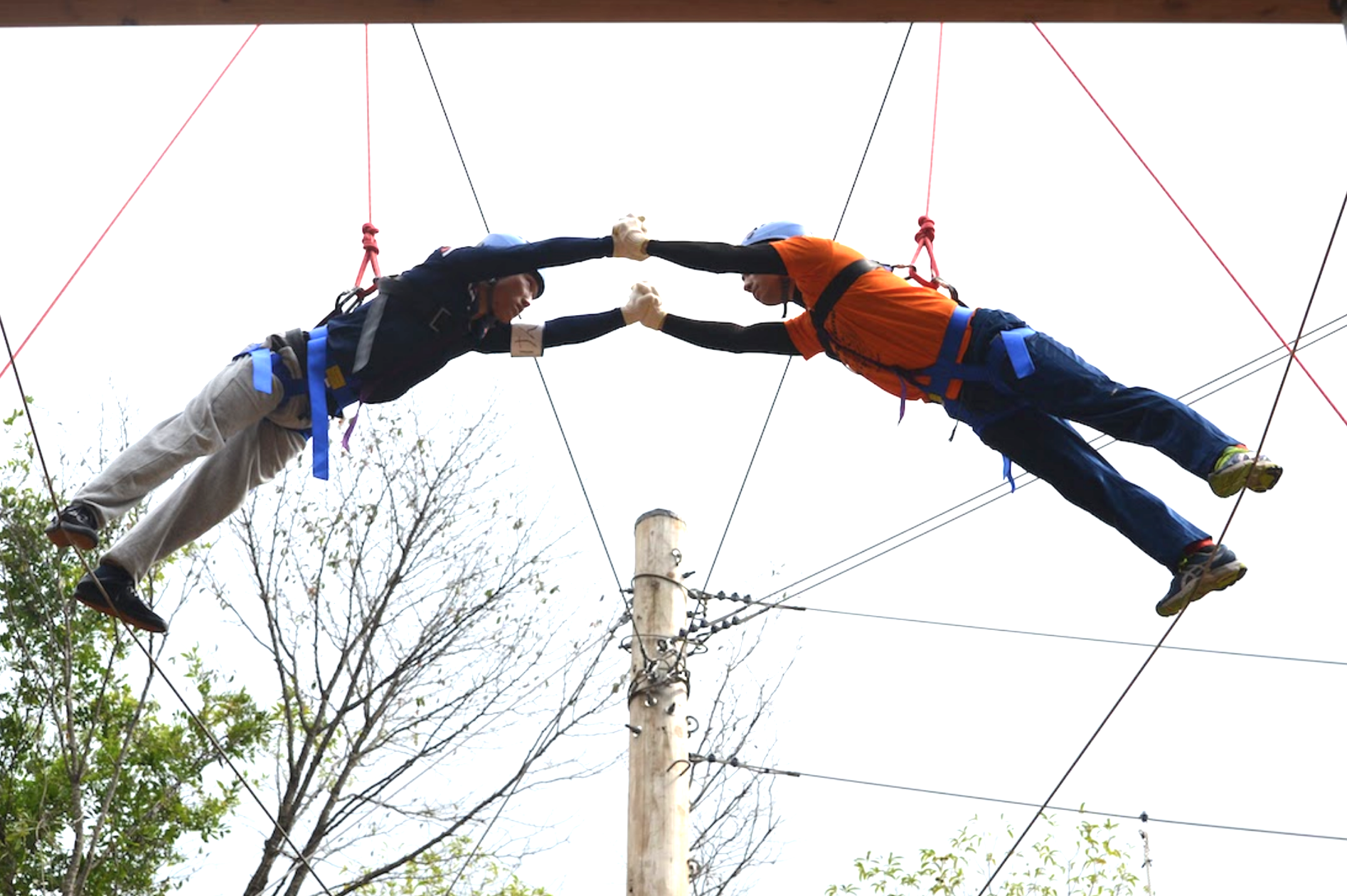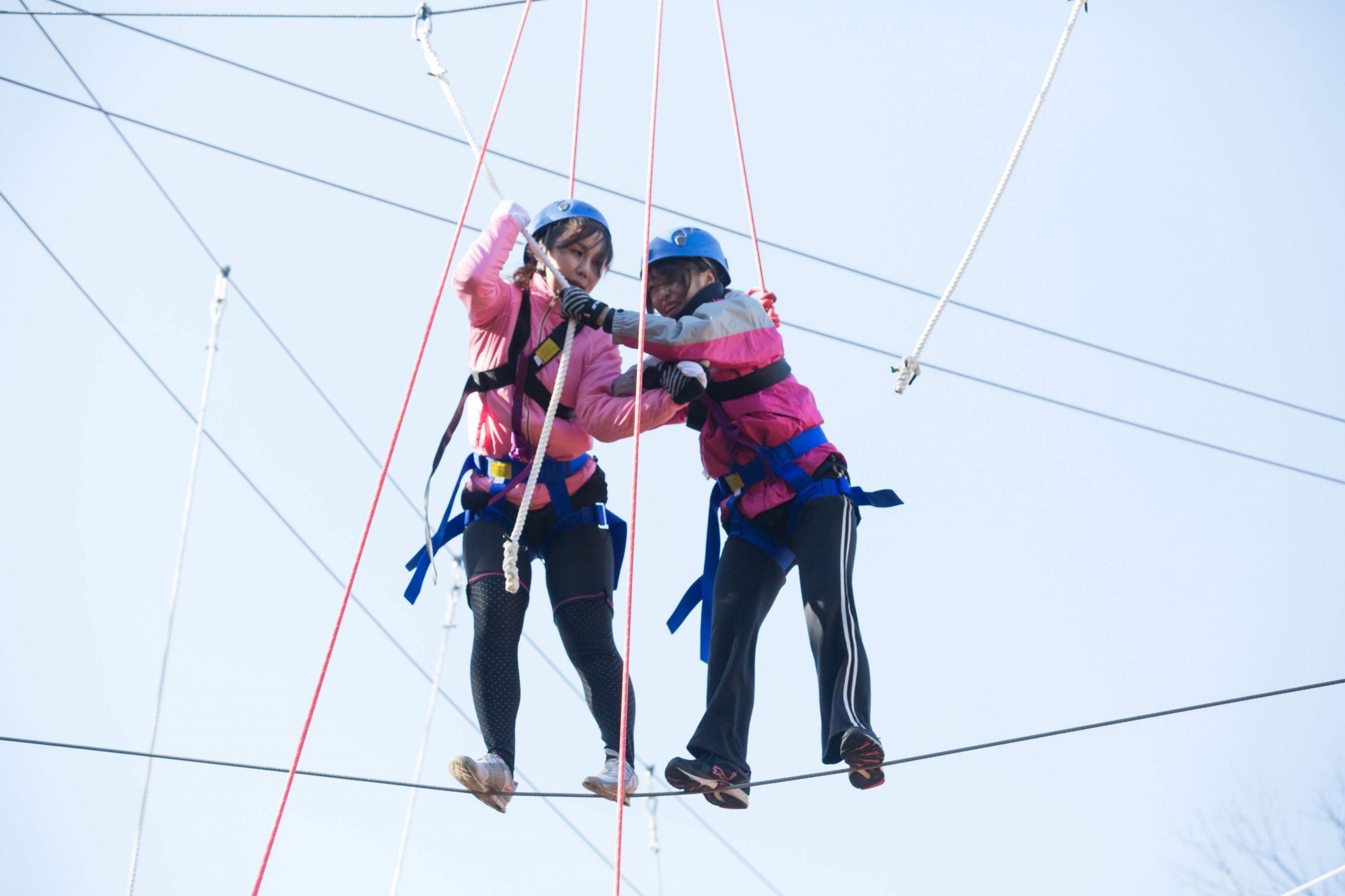 こちらも高所で行うワークとなり、2人同時にチャレンジします。