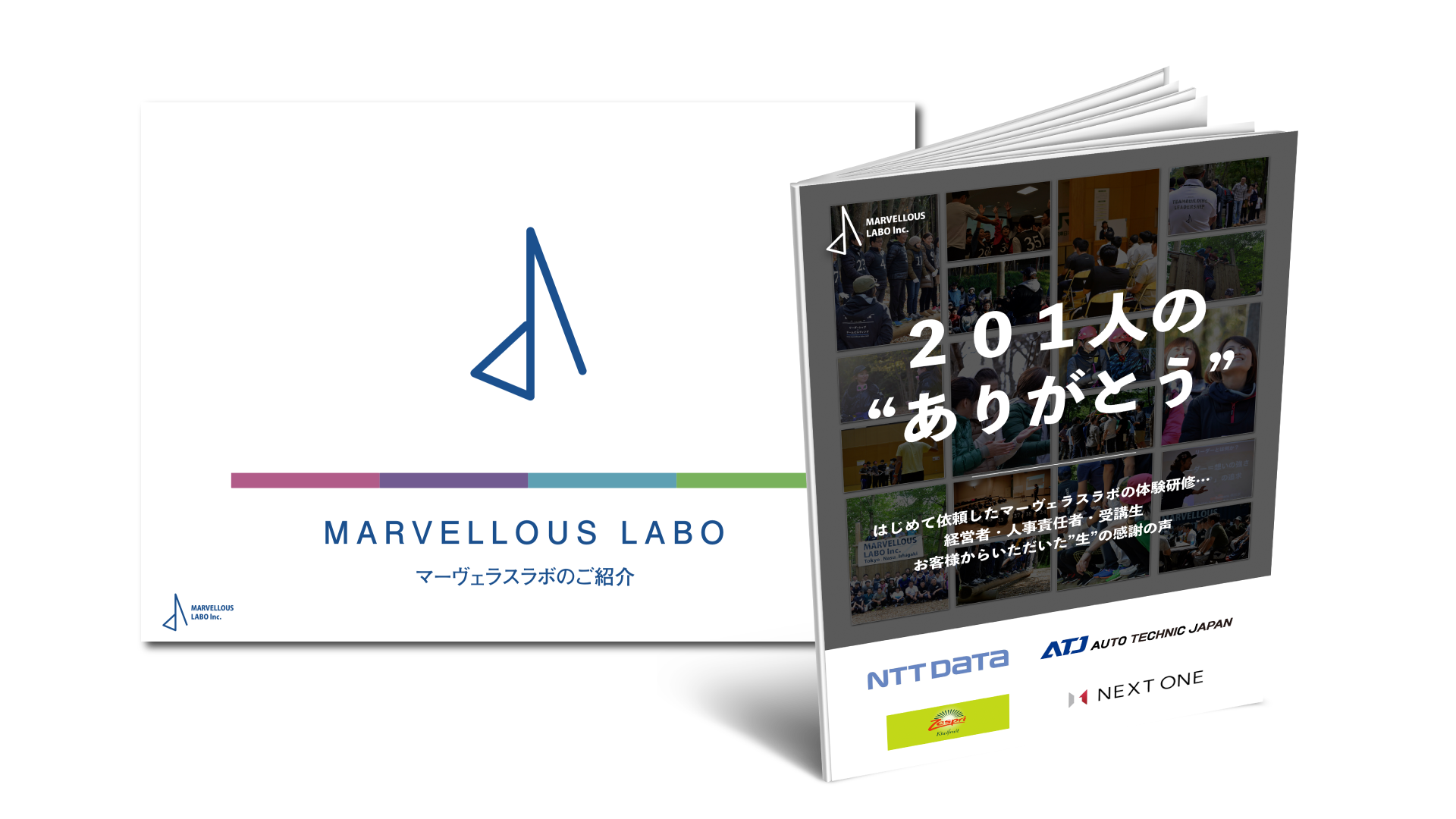 私たちマーヴェラスラボで行うチームビルディング研修についてより深く知りたくなった方は私たちの研修のご紹介とお客様の生の声を無料プレゼントしております。興味のある方は以下のページより今すぐお受取りください。